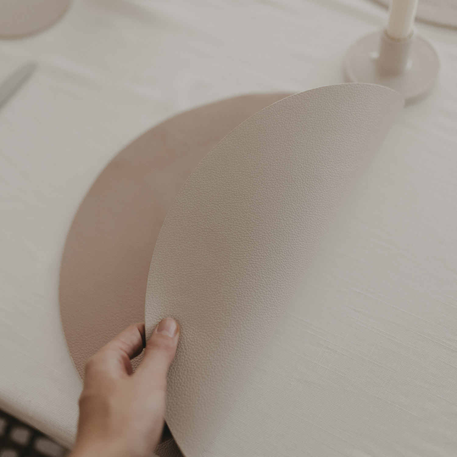 Das wendbare Platzset von Eulenschnitt hat auf beiden Seiten ein Herz in der Mitte eingeprägt. Das harmonische Platzset ist ist dank der neutralen Farbe auch im Alltag bestens nutzbar und passt in jedes Zuhause. Die glatte Oberfläche ist leicht zu reinigen.