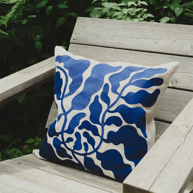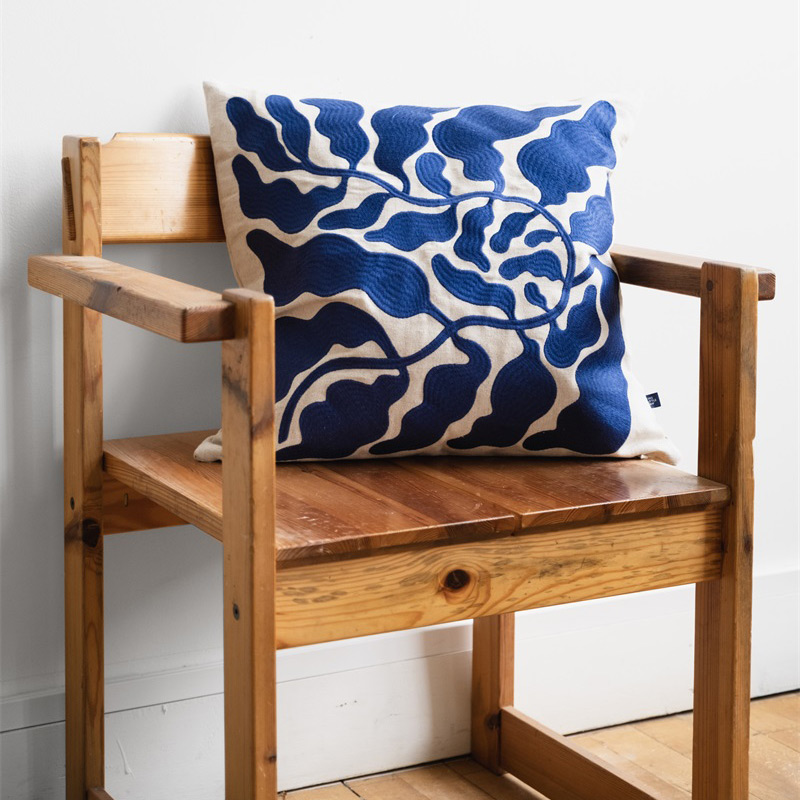 Der Fine Little Kissenbezug aus schwerem Leinenstoff ist bestickt mit dem auffälligen botanischen Muster von Linnéa Andersson in Blau. Die Künstlerin ist bekannt für ihre farbenprächtigen, grossformatigen botanischen Blätter. Ihre lebhaften, ausdrucksstarken Arbeiten sind eine Mischung aus farbenfrohen Motiven und Mustern, die extravagant, dynamisch und einmalig dekorativ sind.