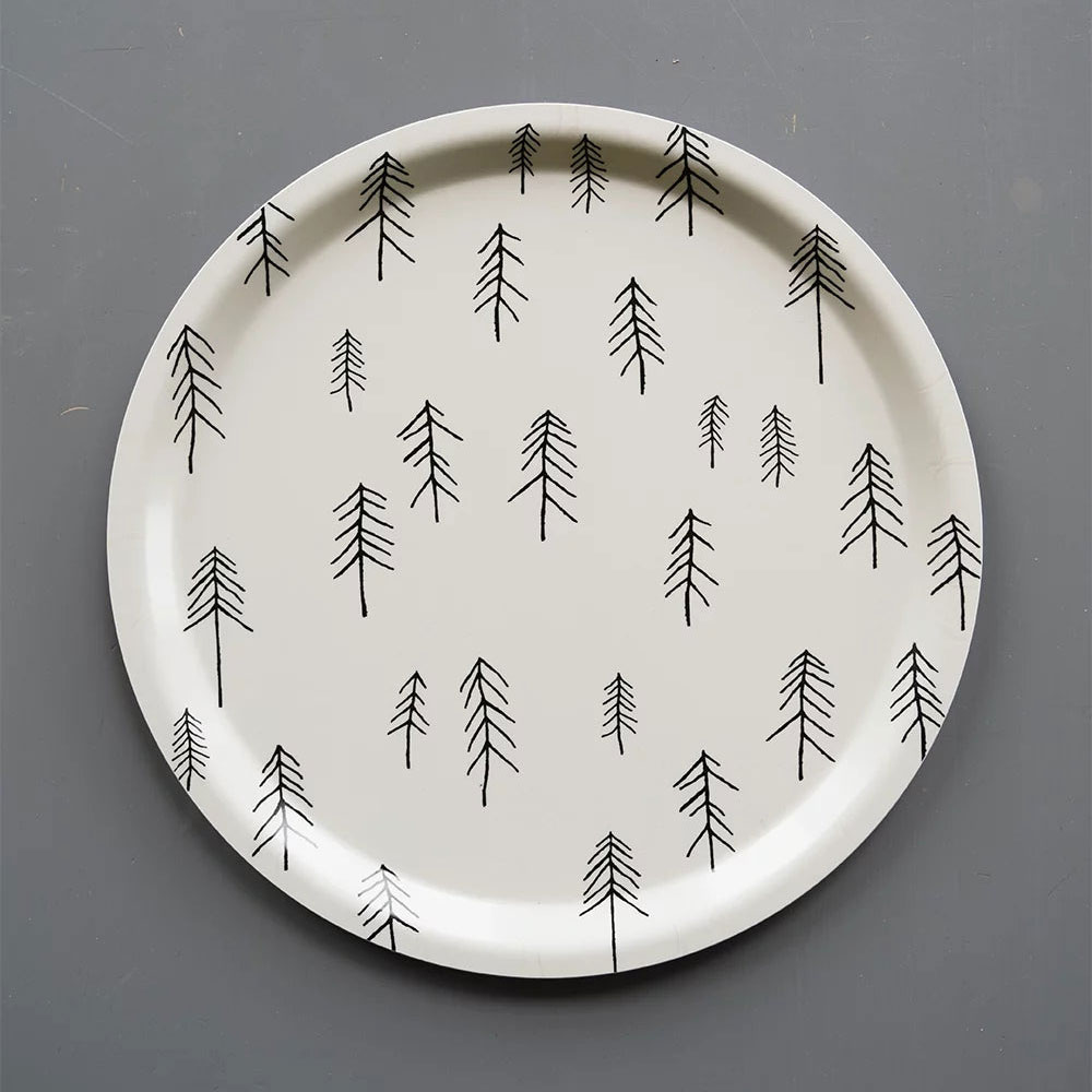 Das Fine Little Day Tablett mit dem Tall-Design von Elisabeth Dunker ist aus laminiertem Birkenholz gefertigt. Die Tannen in unterschiedlichen Formen und Grössen vermitteln eine gemütliche, winterliche Atmosphäre. So können Tee und Kuchen, Apéro oder anderes stillvoll serviert werden.