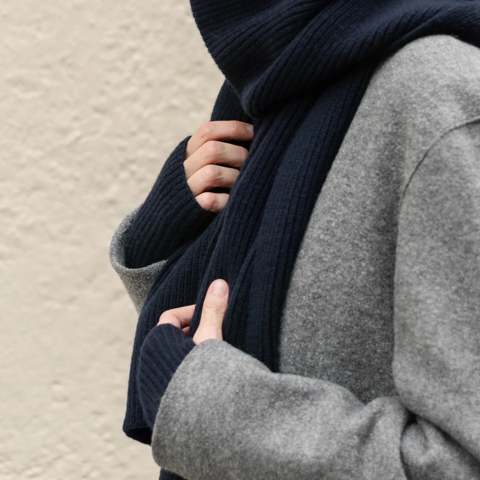 Die langen Pulswärmer mit Daumenloch von LOST&FOUND aus Rippstrick wärmen die Hände, während die Finger frei bleiben für feine Handgriffe. Die Pulswärmer werden aus einer hochwertigen Mischung aus Merino fine Wolle und Cashmere gestrickt.