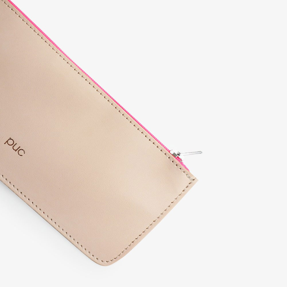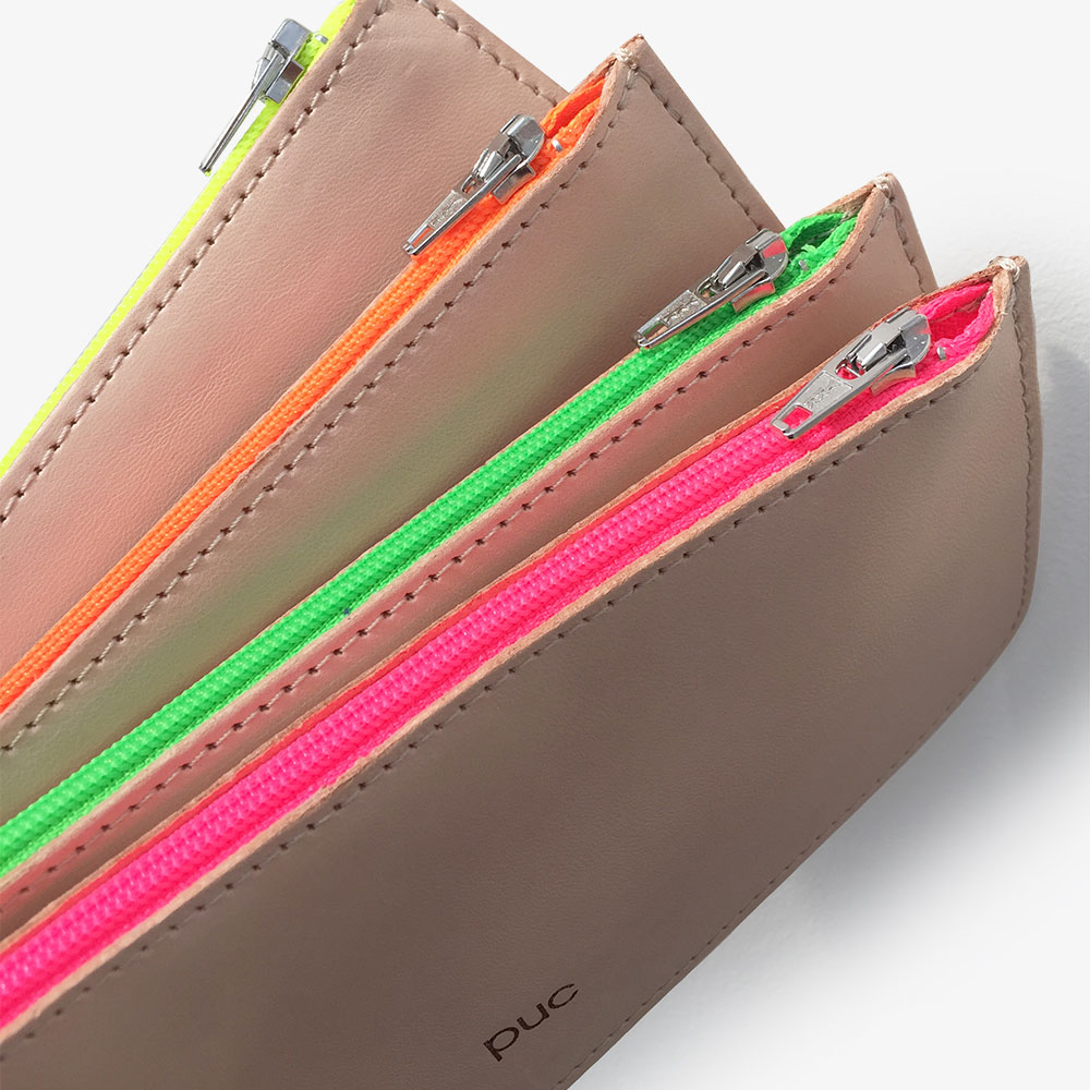 Das Etui aus natürlich gegerbtem Rindsleder bietet Platz für Ihre Schreibutensilien. Der neonfarbige Reissverschluss ist das I-Tüpfchen.